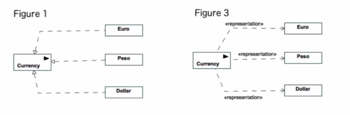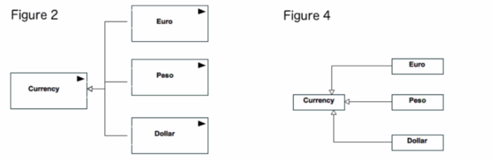 In UML, an InformationItem represents an abstraction of all those elements in a UML model that have an information-bearing feature. It is depicted as a classifier with the keyword informationItem. An InformationItem does not have direct instances and serves as a mechanism to handle unspecified, untyped information in a model. In the context of a commercial transaction model, currencies such as euros, pesos, and dollars can be abstractly represented as InformationItems to signify that they are used as a form of data exchange but without specifying the concrete structure or data type. Figure 2 correctly uses InformationItem notation, with the informationItem keyword and the directed association pointing from the Currency InformationItem to the Euro, Peso, and Dollar, which are likely representations or manifestations of the Currency. This complies with the UML specification for representing abstract entities in models that are involved in the exchange or flow of information.