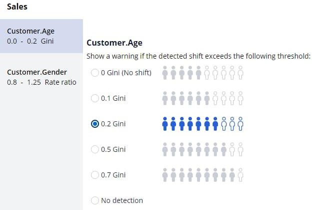 The Pega Customer Decision Hub User Guide explains the use of Gini coefficients for measuring and setting thresholds to control bias in decisioning strategies.