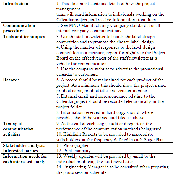 During the initiation stage the Project Manager met with the Marketing Director to find out more about the requirements of the promotional calendar and recorded the following notes: