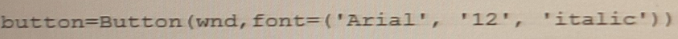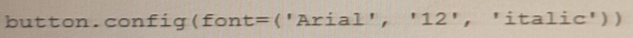 Option C is correct because it sets the font option of the button to a string containing the font family ('Arial'), size (12), and style ('italic') separated by spaces.