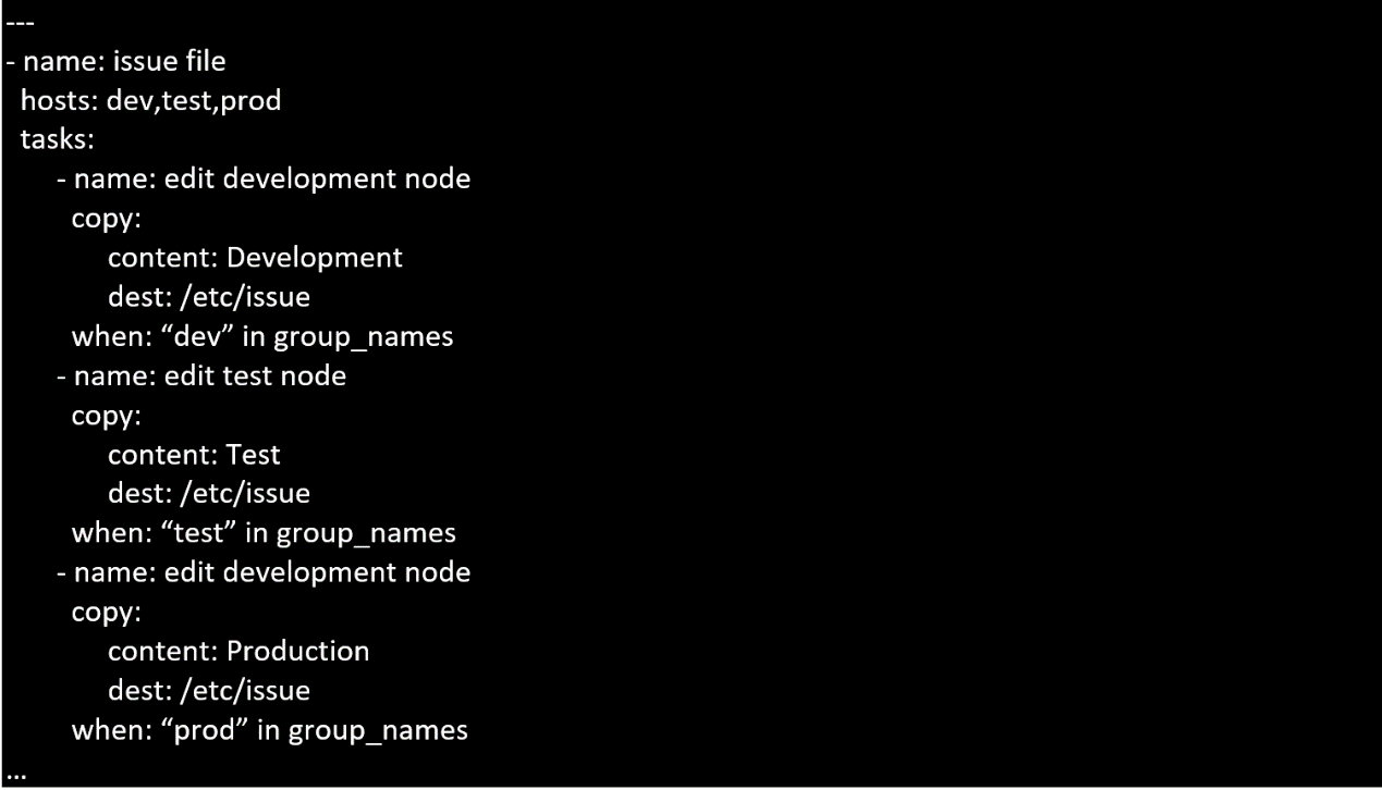 Create a playbook called issue.yml in /home/sandy/ansible which changes the file /etc/issue on all managed nodes: If host is a member of (lev then write "Development" If host is a member of test then write "Test" If host is a member of prod then write "Production"