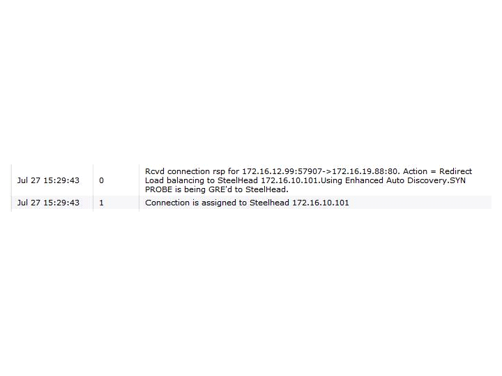 Refer to the exhibit. A Steelhead administrator has decided to implement two Interceptor appliances and one Steelhead applianceon his data center. After configuring the Interceptor appliances, and the Steelheadappliance, he decided to check if the connections are being forwarded appropriately. What happened? (Select 2)