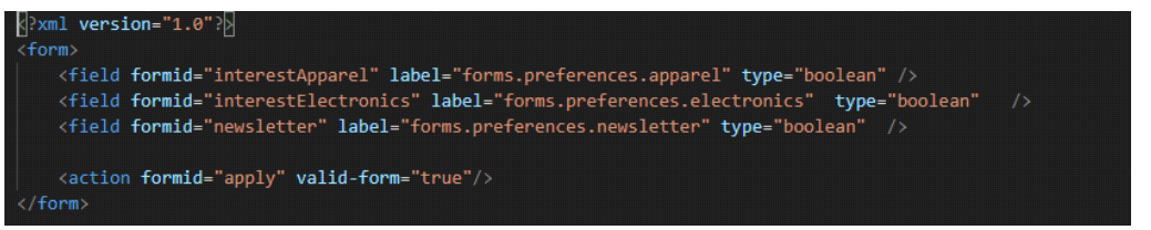 Below is a form definition snippet from the newsletter.xml file: