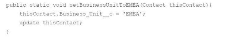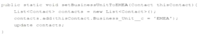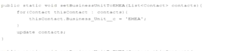 The following Apex method is part of the ContactService class that is called from a trigger: