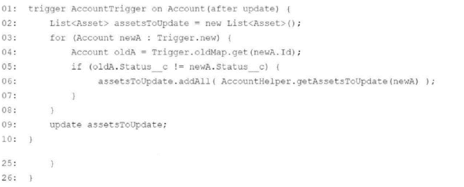 A developer deployed a trigger to update the status__c of Assets related to an Account when the Account's status changes and a nightly integration that updates Accounts in bulk has started to fail with limit failures.