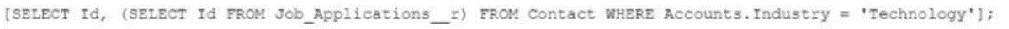 'Technology', while also retrieving the Contact's Job_Application__c records.