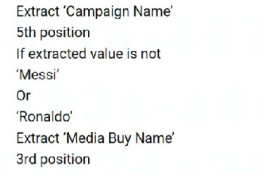 For the field 'Magician', the engineer is required to follow a logic that extracts a value from 'Campaign Name' and checks against a validation list for specific values ('Messi' or 'Ronaldo'). If those values are not found, it should instead extract from 'Media Buy Name'. To accomplish this, the engineer should: