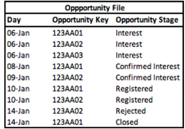Given the above file and logic and assume that the file is mapped in the OPPORTUNITIES Data Stream type with the following mapping: