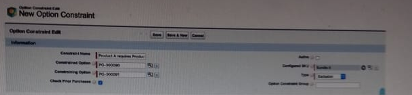 An admin is setting up multiple Option Constraints. When configuration the bundle. a user should be unable to select Product B unless the user has also selected Product A.