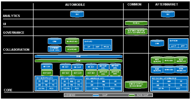 o Automobile business runs on three continental SAP ECC instances with inherited, disparate
