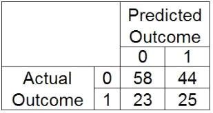 Calculate the sensitivity. (0 - negative outcome, 1 - positive outcome)