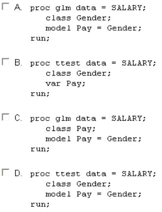 Which SAS programs can be used to find the p-value for comparing men's salaries with women's salaries? (Choose two.)