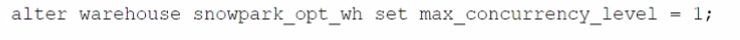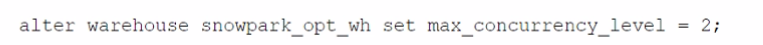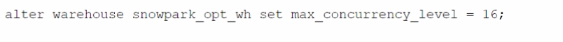 Which SQL alter command will MAXIMIZE memory and compute resources for a Snowpark stored procedure when executed on the snowpark_opt_wh warehouse?