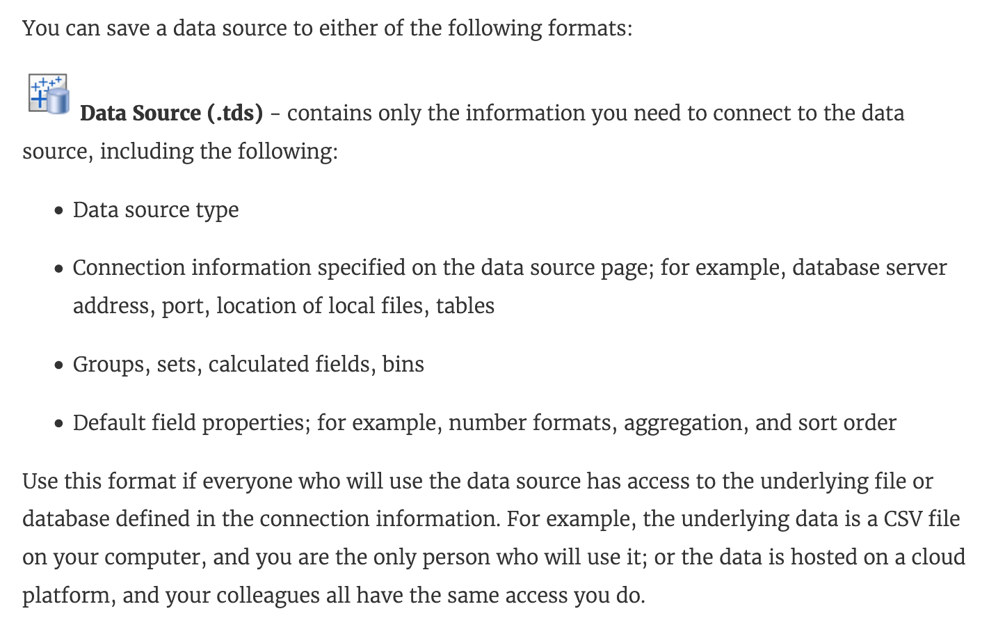 Visualisations and Data extracts are NOTsaved in a .tds file!
