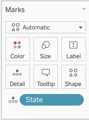2) Now, break down this view by state. Drag State into Detail on the Marks shelf ( or directly to the view):