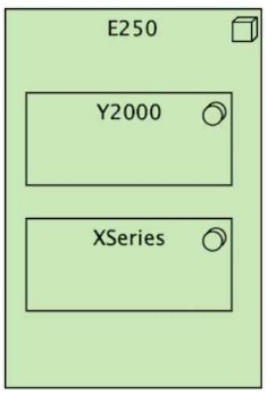(A diagram depicting E250 as a node, containing Y2000 and XSeries as internal components.)