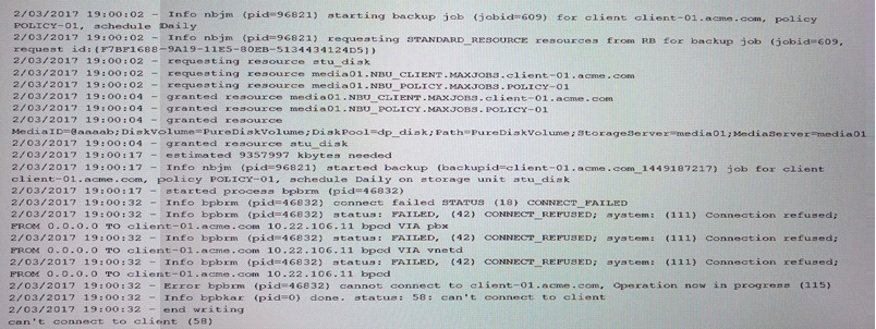An administrator has a job that has failed. See the contents of the Job's Detailed Status tab from the NetBackup Activity Monitor provided below: