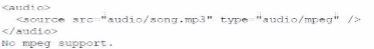 A web developer need to ensure that a message appears if the user's browser does not support the audio files on a web page.