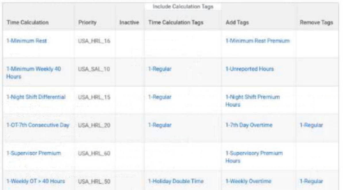 The correct answer is C. USA_HRL_70. In this scenario, the new calculation is designed to evaluate hours that already have the 1-Supervisor Premium tag. In the report, the existing 1-Supervisor Premium calculation has a priority of USA_HRL_60. In Workday Time Tracking, when a calculation depends on the output of another calculation, it must run after the earlier calculation has already assigned its tag. Otherwise, the new calculation would run too soon and would not find the tagged hours it is supposed to evaluate.