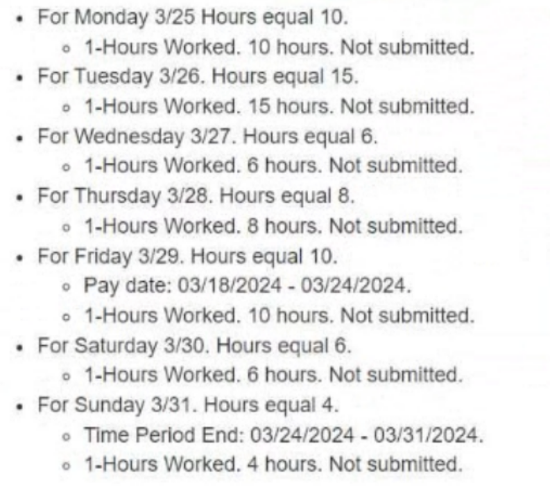 In this example, the worker enters time from 8:00 PM on April 05 to 4:00 AM on April 06, which equals 8 total hours. These hours split as follows: